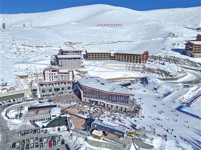 这是1月17日拍摄的新疆阿勒泰可可托海国际滑雪度假区(无人机照片)。