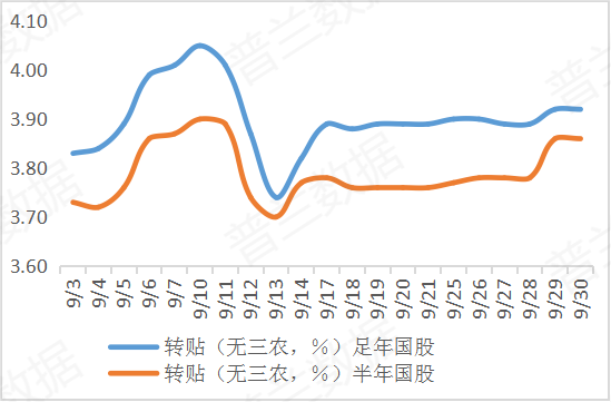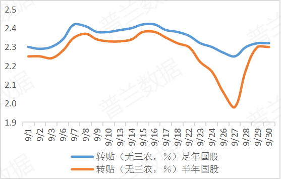 2023年9月票据利率整体呈现“上旬先涨后跌,中旬长稳短升,下旬涨后震荡”的走势。月初,看涨后市影响,机构观望情绪相对较浓,随着央行持续加码逆回购操作补充流动性,买方收票热情得到提振,需求有所释放,票价在供需博弈下先涨后跌。中旬,年内第二次降准落地,但缴税、地方债发行叠加MLF到期影响,资金维持紧势,大行进场收跨年票,卖盘出口以年内票居多,机构卖短收长调节下,票价长稳短涨。下旬,机构融资成本高位,大行操作减少带动市场谨慎情绪渐起,RMBS后半月加快回表,信贷投放压力有所缓解,票源供给抬升,规模调整下,卖盘出票力度增加,季末开启涨价行情。